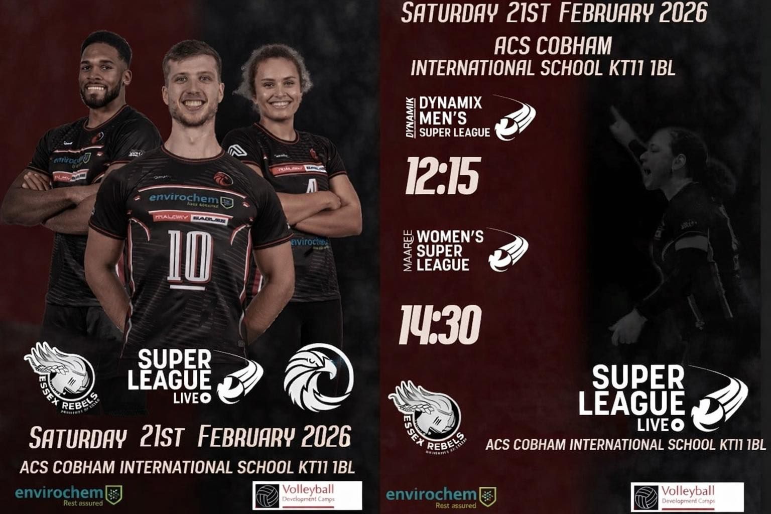 🔥 SUPER LEAGUE LIVE AT ACS COBHAM 🔥 Join us on Saturday 21st February 2026 for an action-packed day of top-level volleyball at ACS Cobham International School (KT11 1BL) 🏐 ⏰ 12:15 – Men’s Super League ⏰ 14:30 – Women’s Super League Bring your friends, family, and make a day of it – see you courtside! 💥💪